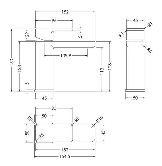 Nuie Vibe Square Mini Mono Basin Mixer With Push Button Waste