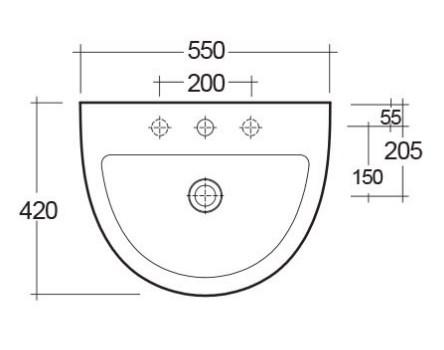 RAK-Nova 460mm Semi Recessed Wash Basin 1TH