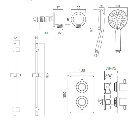 Vado DX Life - 2 Outlet Oval Thermostatic Shower set with Shower Kit