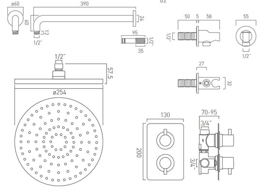Vado Celsius Exposed round thermostatic Showr Set with 1/2” shower valve