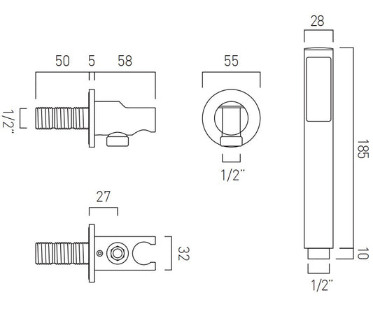 Nuie Windon Spa Square 2 Outlet Shower Pack With Stop Tap