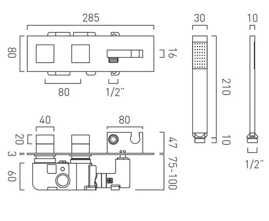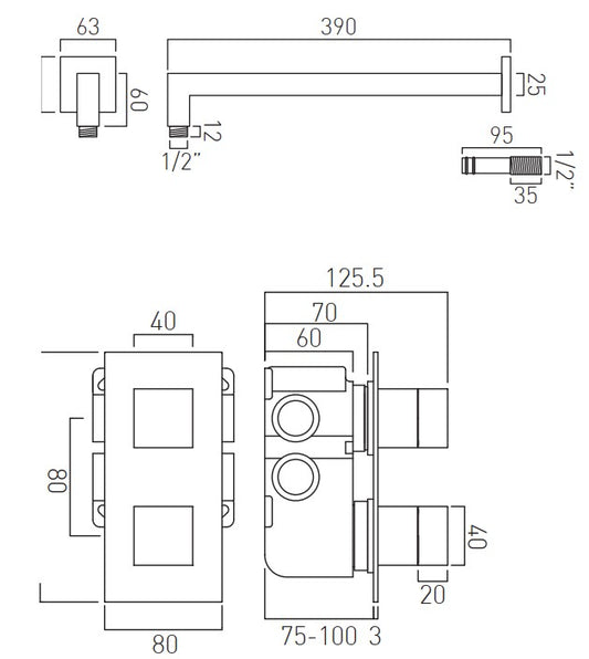 Vado Dx Mix - 3 Outlet Thermostatic Square Shower Set