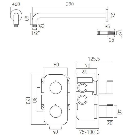 Vado DX Celsius - 2 Outlet Thermostatic Shower set