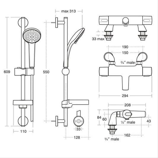 Vado DX Celsius 3 Outlet Thermostatic Shower Set