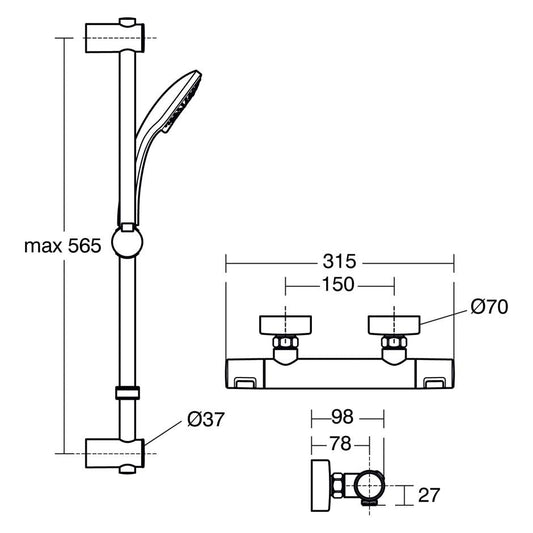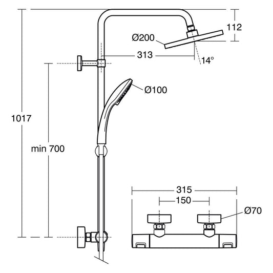 Ideal Standard Ceratherm T25 exposed thermostatic shower mixer pack