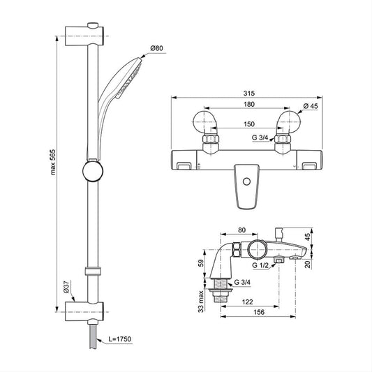 Ideal Standard Ceratherm 100 Exposed thermostatic bath shower mixer pack