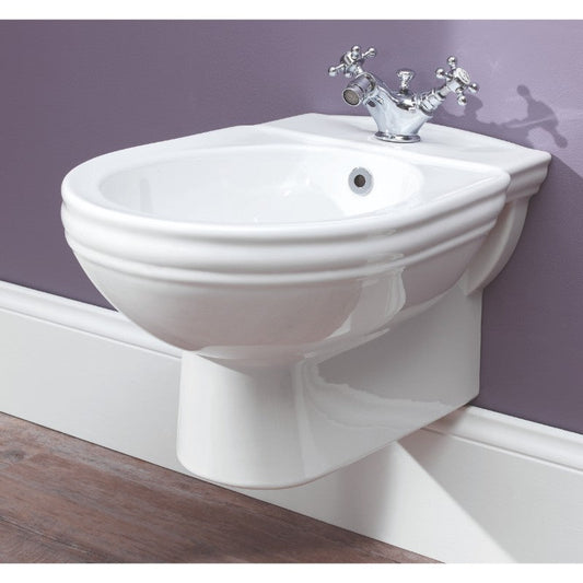 Silverdale Belgravia/Victorian White Wall Mounted Bidet - 1 Tap Hole