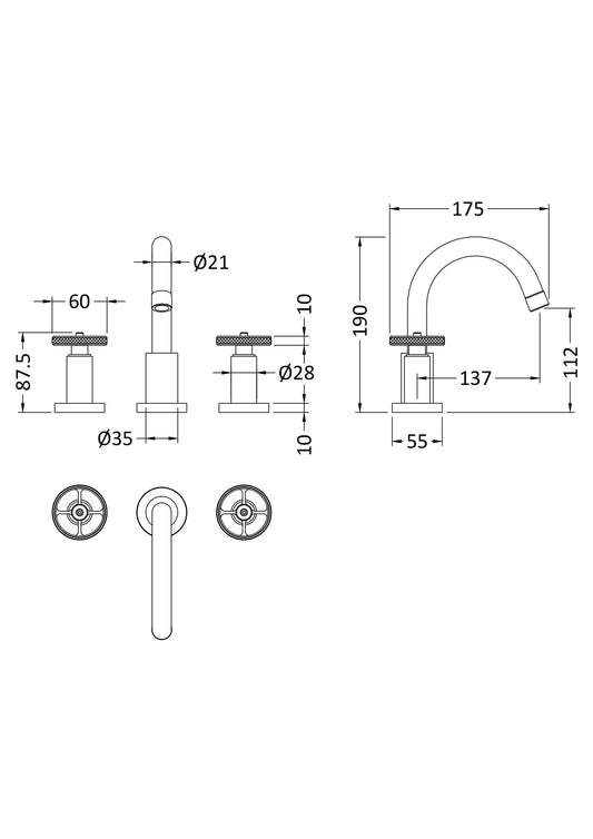 Hudson Reed Revolution Industrial 3 Tap Hole Basin Mixer With swivel spout and pop-up waste