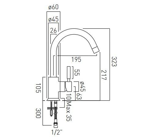 Vado Kori Mono Sink Mixer Single Lever Deck Mounted With Swivel Spout