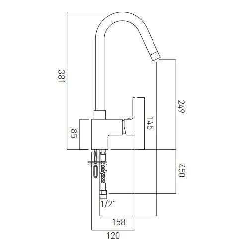 Vado Vibe Professional Mono Sink Mixer Deck Mounted With Swivel Spout