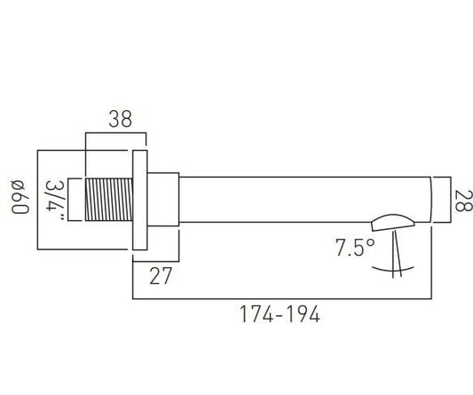 Vado Synergie Waterfall Bath Spout Wall Mounted
