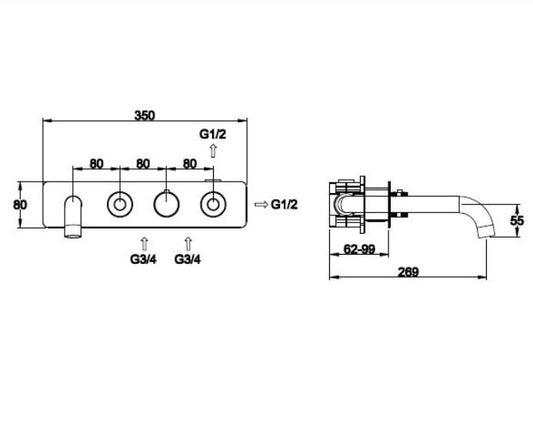 RAK-Prima Tech Dual Outlet Concealed Thermostatic Shower with Bath Spout