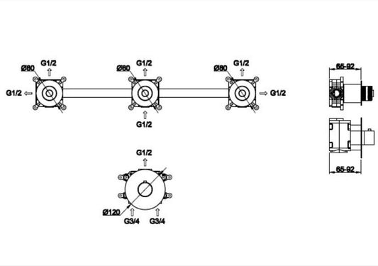 RAK-Prima Tech Triple Outlet Concealed Thermostatic Shower