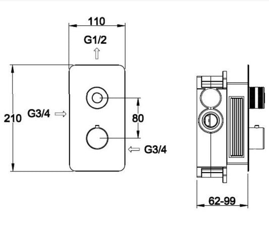 RAK-Prima Tech Single Outlet Concealed Thermostatic Shower