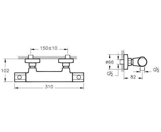 RAK-Universa Exposed Thermostatic Bar Valve