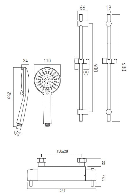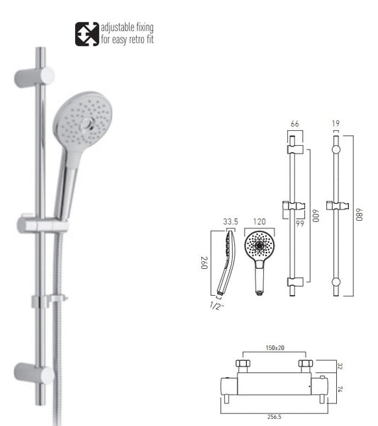Ideal Standard Ecotherm thermostatic bar valve wall fixings and shower kit
