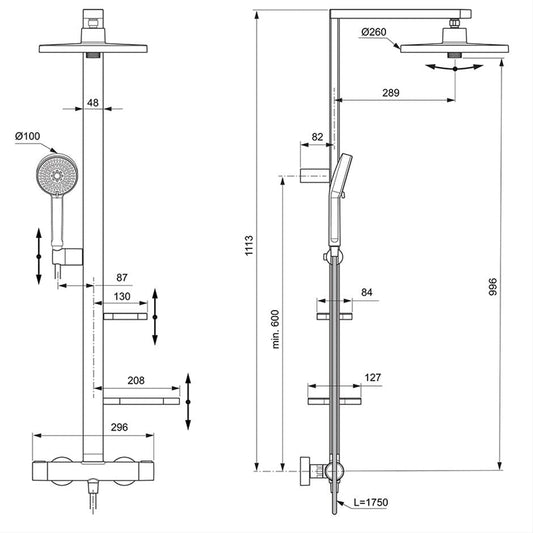 Vitra Aquaheat Bliss 240 thermostatic shower column with 2F overhead