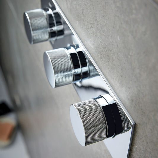 Vado Tablet Knurled 3 Outlet 3 Handle Concealed Thermostatic Valve with Knurled Handles