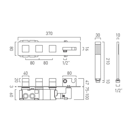 Vado Tablet Notion Square 3 Outlet 3 Handle Concealed Thermostatic Valve