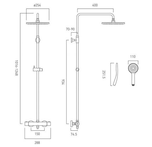 Vado Tablet Altitude Round- 2 outlet thermostatic shower Set with slide rail shower