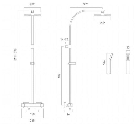Vado Tablet Altitude Square- 2 outlet thermostatic shower Set with slide rail shower
