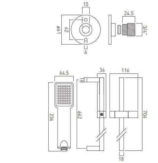 Vado DX Phase 2 Outlet Square Thermostatic Shower Set