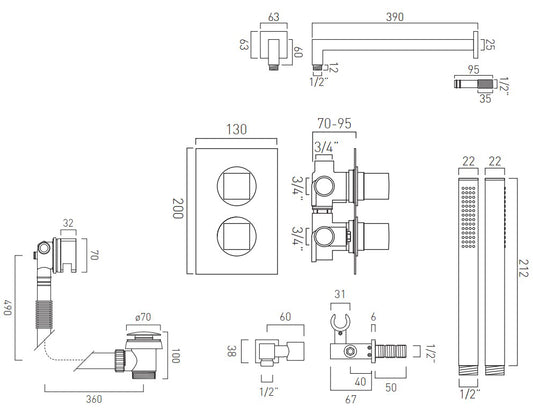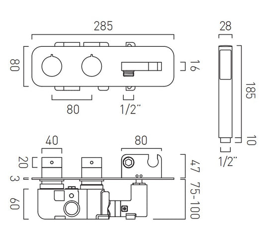 Vado Dx Mix - 3 Outlet Thermostatic Square Shower Set