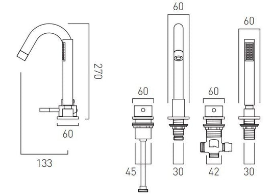 Vado Zoo Deck Mounted 5 Hole Bath Shower Mixer 3/4"