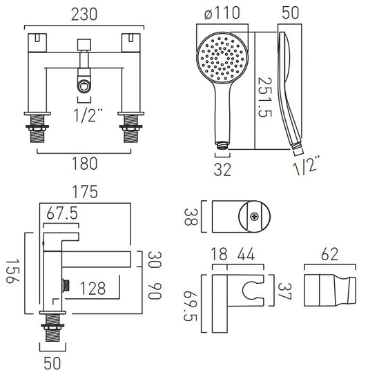 Vado Edit 2 Hole Bath Shower Mixer with Shower Kit