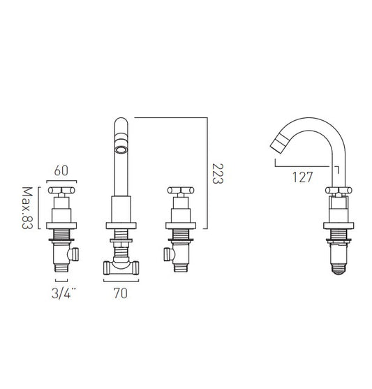 Vado Elements 3 Hole Bath Filler Deck Mounted without Handset