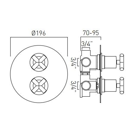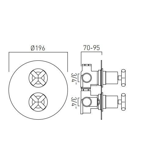 Vado Elements Water 3 Outlet 2 Handle Thermostatic Shower Valve