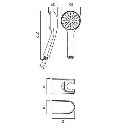 Vado Eris Round Single Function Mini Shower Kit With 150Cm Shower Hose And Bracket