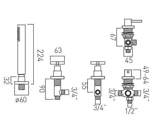 Vado Elements 4 Hole Bath Shower Mixer Without Spout