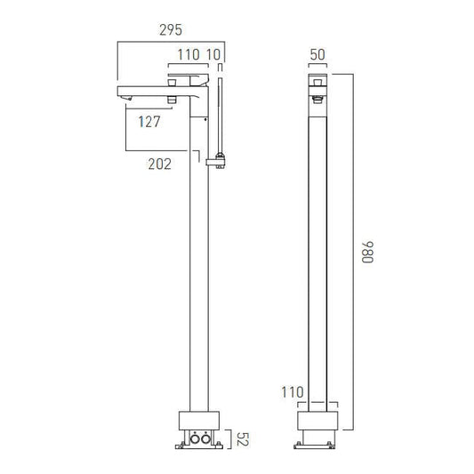 Vado Life Bath Shower Mixer With Shower Kit Single Lever Floor Mounted