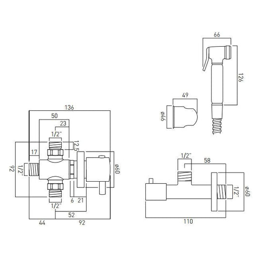 Vado Luxury Shattaf Kit With Concealed Thermostatic Mixing Valve