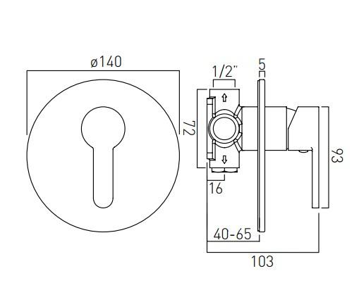 Vado Sense Concealed Single Lever Wall Mounted Manual Shower Valve With Diverter