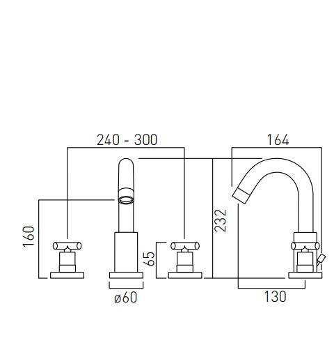 Vado Elements Water 3 Hole Basin Mixer Deck Mounted With Pop-Up Waste