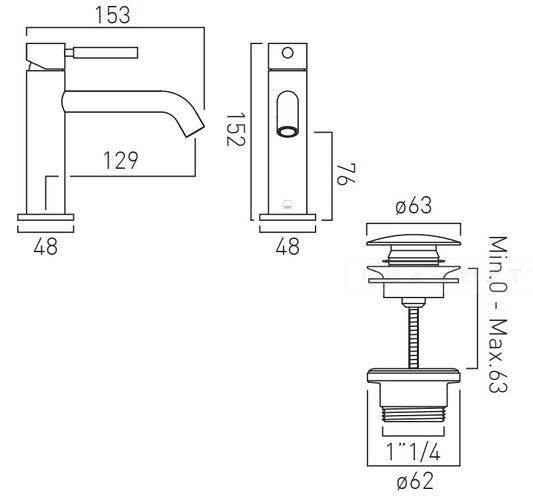 Origins Slimline Mono Basin Mixer with Knurled Handle and Universal Waste
