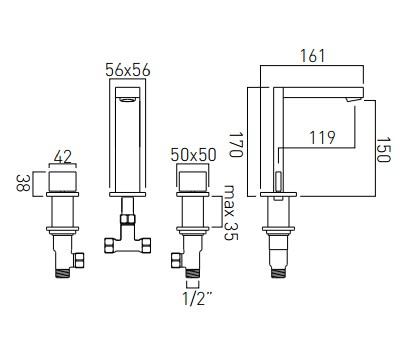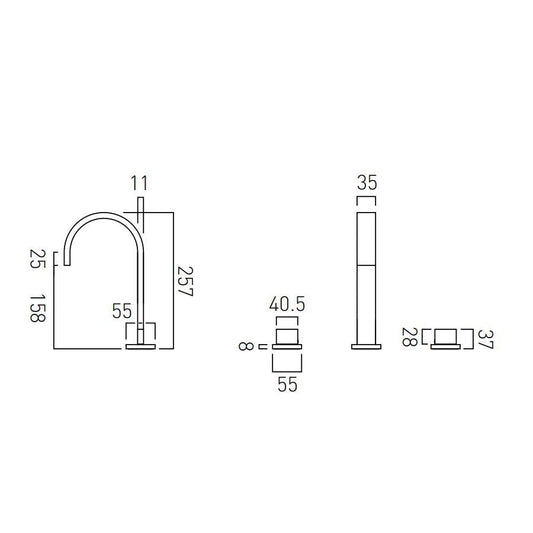 Vado Geo Deck Mounted Basin Mixer With Square Handles