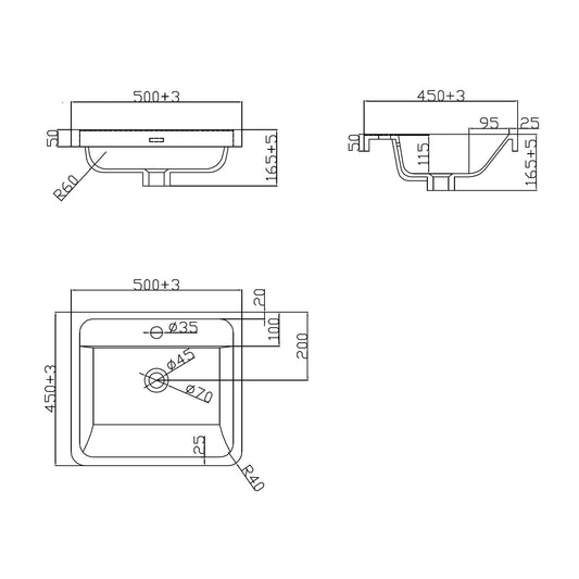 Harrogate Square 395 x 260mm Under Mount Vanity Basin