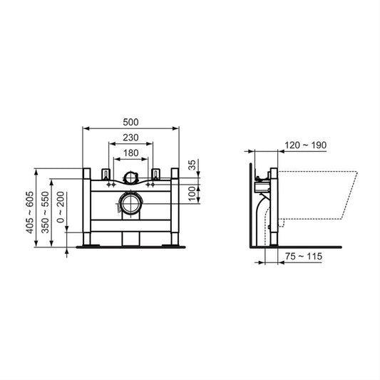 Ideal Standard Prosys H1150 x D120mm front actuation CL2 wall hung WC frame with Cistern