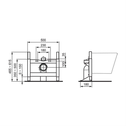 Ideal Standard Prosys H1150 x D120mm 3 adjustable heights pneumatic wall hung WC frame with Cistern