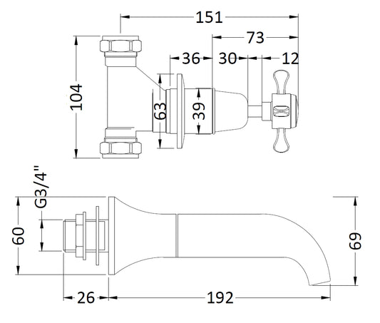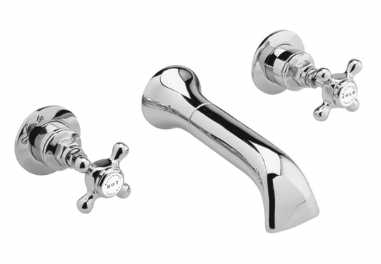 Hudson Reed Topaz Crosshead Dome Wall Mounted Bath Spout and Stop Taps