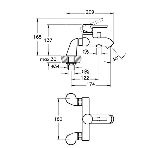 Roca Carmen Wall-Mounted Bath-Shower Mixer