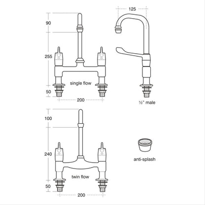 | Markwik ½" pillar mixer with 150mm levers, single flow pattern 200mm projection swivel spout and brass flow guide | S8207AA |