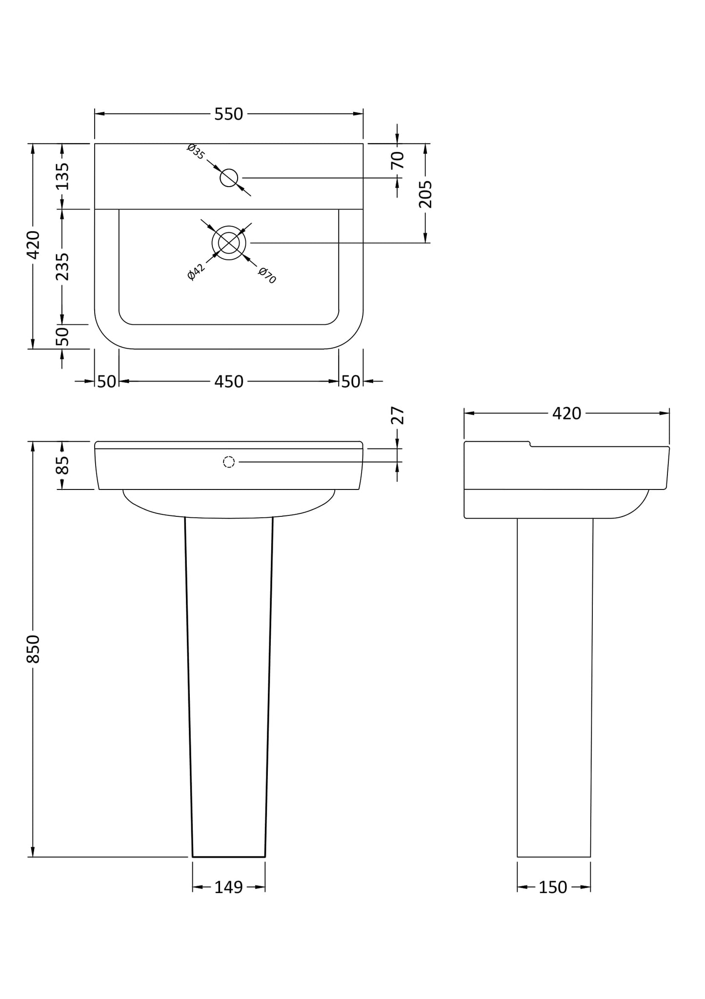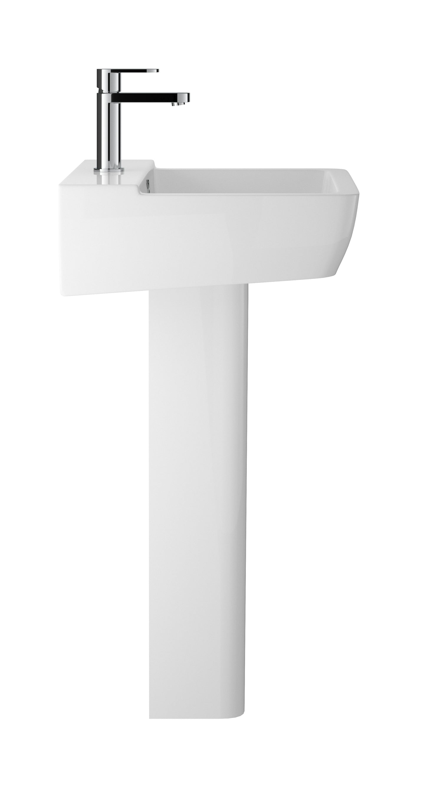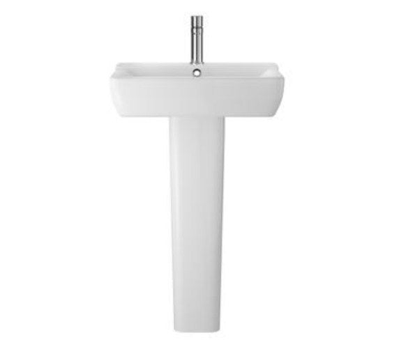 The soft square forms are an ideal balance between contemporary and organic design. Softly tapered basin design with wide tap deck. Full pedestal for a classic look. Co-ordinating pan options available. Manufactured from high quality vitreous china.