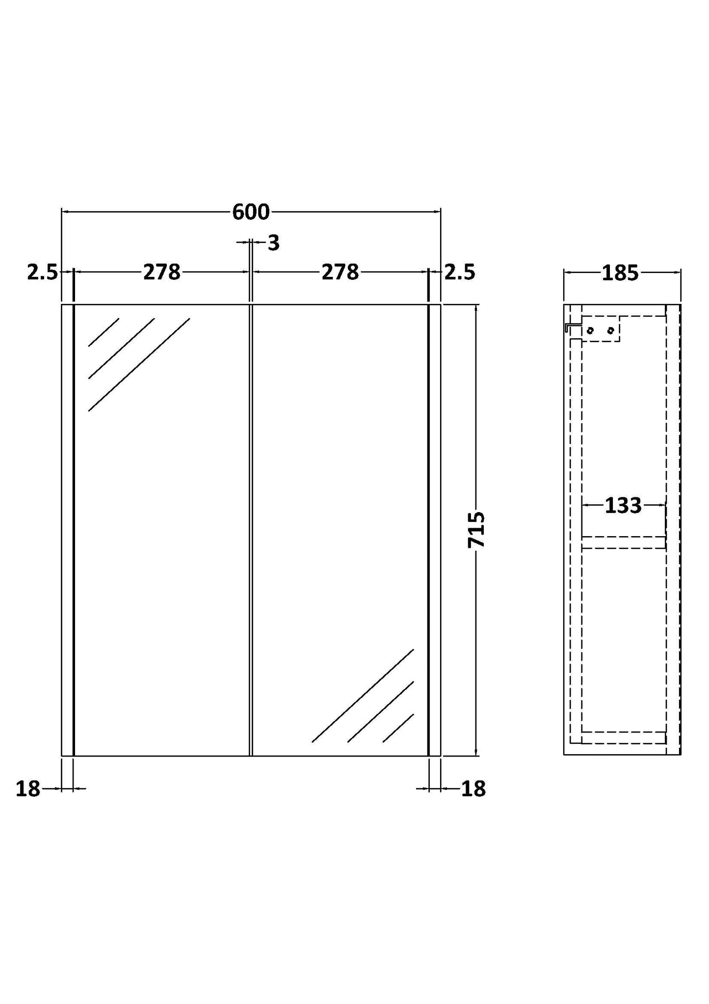| Hudson Reed Juno 600mm Mirror Unit (50/50) - Metallic Slate | NPF2617 |