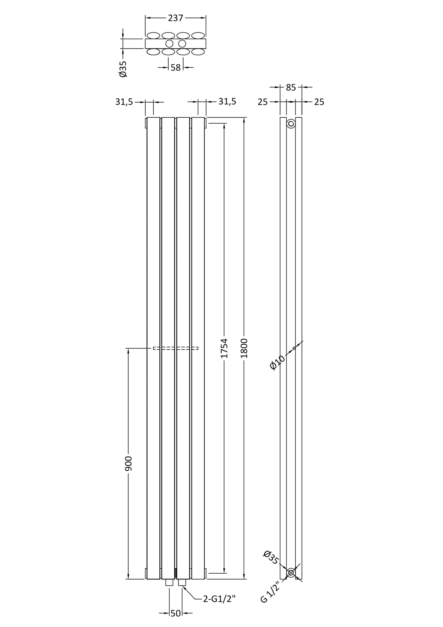 | Hudson Reed Revive Vertical Radiators - Compact Vertical Double Panel - H1800 x W236 - Btu/Hr 3118 - Anthracite | HRE009 |