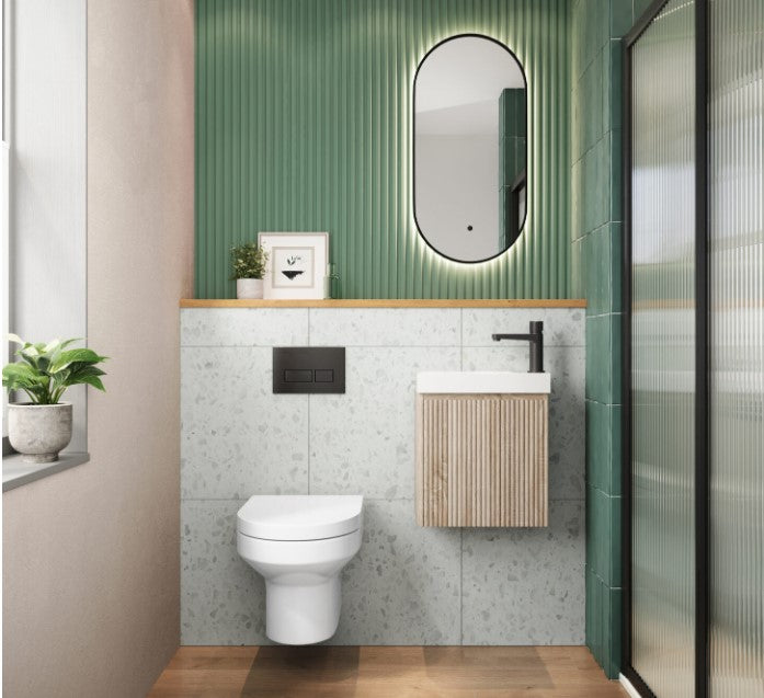 Fluted finishes have become increasingly sought after in bathroom design for their elegant and timeless appeal. If you’re working with a smaller space; get on board with this tactile trend with the Linea cloakroom unit to add character and elevate your bathroom. Our Linea cloakroom unit is perfect for cloakroom; en-suite; and small bathroom spaces. The compact unit features a single soft close drawer with fluted panelling and the inset basin features high quality ceramic construction.