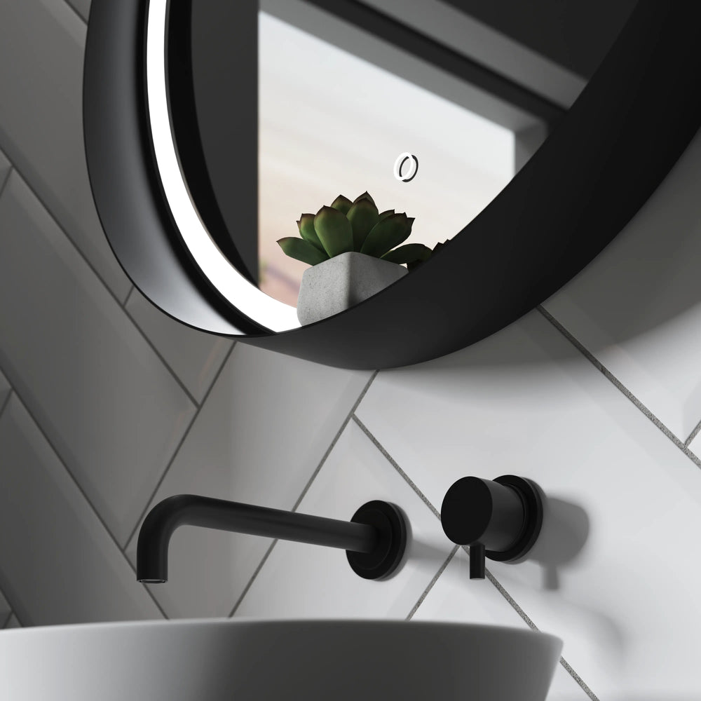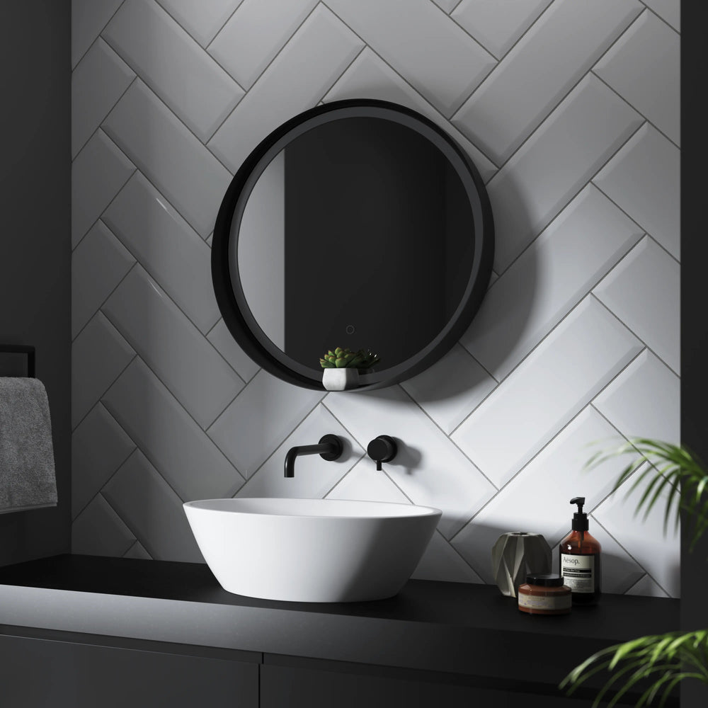 The Oroni is styled in trending matt black and features our touch-controlled TrioTone 3-in-1 illumination. This design features a decorative shelf plus an integrated demister to keep the mirror steam free.